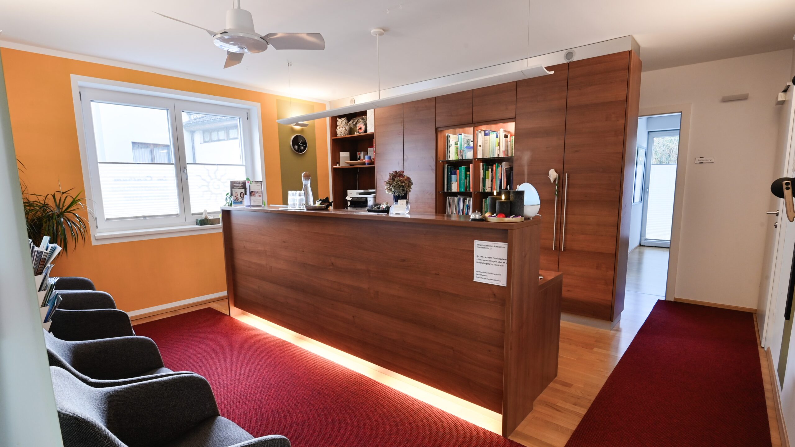 Die Räumlichkeiten sind nach Süden ausgerichtet, dadurch verbreitet das Tageslicht zu jeder Jahreszeit eine angenehme Behandlungsatmosphäre für unsere Patienten, sowie ein gesundes Arbeitsklima für die Therapeuten.